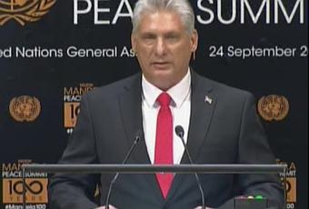 "Cuánto nos alegra y reconforta que la Asamblea General de Naciones Unidas se reúna en una Cumbre por la Paz y que esa Cumbre lleve el nombre de Nelson Mandela", expresó el Presidente de los Consejos de Estado y de Ministros de Cuba, al iniciar su intervención en la Cumbre de la Paz dedicada a Nelson Mandela en la ONU.
