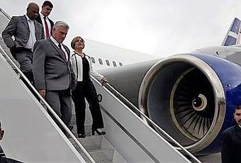 La llegada se produjo a bordo de un avión de Cubana de Aviación, en concreto un IL-96-300; y fueron recibidos por la Representante de Cuba ante la ONU y el Embajador en Washington.