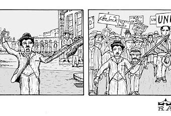 El advenimiento de la revolución industrial supuso la deificación de la máquina. Los preceptos de la nueva religión eran paganos y capitalistas, tal vez eso sea una redundancia. Las cadenas de montaje en las fábricas crearon la ilusión de que el bienestar era accesible a todos o de cualquiera podía adquirir la mercancía, conformada como detentación de un status o hasta como icono. El peaje consistió en la alienación del obrero, en su descomposición gradual como persona y, las más de las veces, de acuerdo al grado de integración en esa cadena, la mutación en otra de sus piezas, en un engranaje entre los engranajes, en un objeto entre los objetos. La industria era la nueva gran cruzada que habría que dar con el grial de la felicidad. Chaplin hace en Tiempos modernos un uso terapéutico de la pantomima: construye una invectiva visual sobre la deshumanización que posiblemente no haya tenido rival que la iguale. A Chaplin le interesa más reflejar la vacuidad de la sociedad al confiarse a las máquinas que la voracidad del capitalismo.