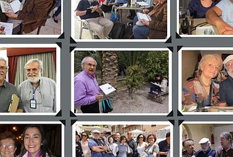 Completaban el cuerpo expedicionario de Ladrones de Cuadernos, además de Juan y Dolça, de Elche, Marisa Ortún que venía de Gijón y Manuel Lorés de Huesca, además de Joshemari e Barcelona y yo de Albacete. Todos aparecen en este resumen de fotos propias y ajenas que incluyo aquí. que a todos ellos va dedicada esta entrada de mi blog. Del grupo de Cuadernos Viajeros eran casi todos los demás amigos y amigas, como los ya nombrados y Lola Clement, o Mª Dolores Piñero, a quien conocí en Cazorla. Muchos otros dibujantes y no menor número de niños, más de 200 personas dibujando por calles, plazas y jardines. El domingo, exposición de algunos trabajos, los cuadernos colgados con pinzas, mientras en esa hermosa plaza bailaban swing bajo el sol y los árboles, redondeando el ambiente. La musica decía. Heaven, I'm in heaven... Cierto.