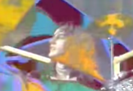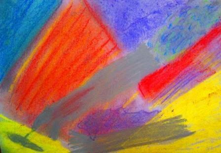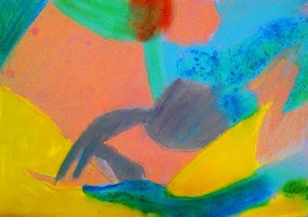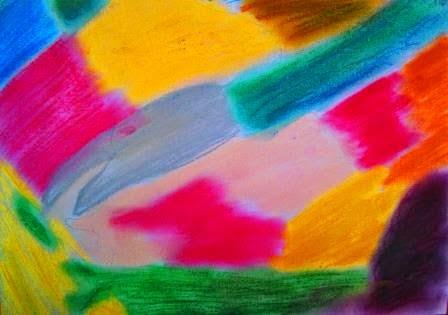 Con los estudiantes del segundo de bachillerato continuamos trabajando con el video del trío Emerson, Lake and Palmer, en esta ocasión, interpretaron los efectos de la Sicodelia de aquella época. La motivación la realicé presentándoles las siguientes imágenes (capturadas del video), las cuales son abstractas con manchas difuminadas y colores muy intensos. Para realizar esta actividad, los alumnos debían pintar manchas de colores imitando a las de las imágenes observadas, aplicando la técnica de los pasteles secos. Una muestra de los trabajos: