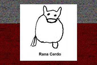 La rana, la rana vulgar y corriente, comparte con la bicicleta su extraordinaria dificultad de ser dibujada. Prueben si no. Ofrezcan a sus amistades papel y lápiz durante alguna sobremesa y amenícenla con inagotables risotadas. En un principio casi todos se negarán, pues dibujar en público una rana produce en el adulto tanta vergüenza como expulsar gases (hablamos de público educado, por supuesto); pero si insistimos convenientemente o hasta llegamos a la amenaza, nadie dejará de plasmar su obra para regocijo de todos. Traemos a colación unos pocos ejemplos del pasado experimento veraniego: Para finalizar por hoy, presentamos la asombrosa: