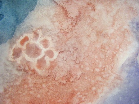2.- Pintar con acuarelas por toda la hoja, no importa que pase sobre el dibujo ( no se daña ).