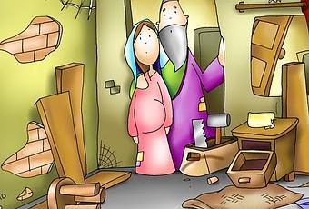 1 domingo: Frase: " preparemos un sitio para el niño" San José y la Virgen se asoman a un cuarto hecho un desastre y piensan en arreglar el cuarto para el bebe. ¿Cuánto tenemos que ordenar en nuestra vida... etc
