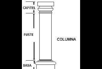 Columna: elemento arquitectónico sustentante, de sección circular de mucha mayor altura que diámetro; suele estar formado, de abajo a arriba, por la basa, el fuste y el capitel, y sirve de soporte de las partes superiores de una cosntrucción o para su decoración.