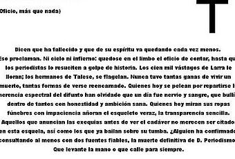 Esta mañana, hablando con mi compañera Olatz (@Olkua) hemos decidido montar un tablero en Pinterest para recoger las defunciones de medios de comunicación. La estrategia era clara, pinear las noticias sobre medios que desaparezcan o dejen de realizar información diaria en papel (o en web, aunque esa opción es extraña). Una especie de in memoriam de los medios fallecidos en 2013. A la vez, se me ha ocurrido hacer otro tablero paralelo con los nacimientos en ese mismo periodo. De ahí que no aparezcan algunos como eldiario.es, Materia, Territorio Málaga o Kubilha.