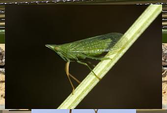"Hemíptero diminuto y chupador de jugos vegetales. Lo más probable es que se trate de Dictyophara reticulata, ya que muestra al final de los élitros una nerviación característica que no se aprecia en Dictyophara europaea, pero dado su tamaño está pendiente de confirmación."
