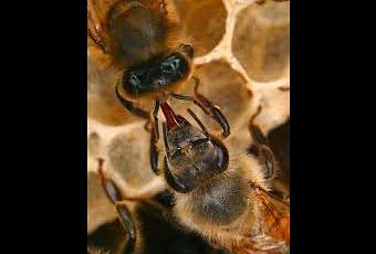 -La abeja luego vuelve a la colmena y regurgita el contenido de su estómago en la boca de otra abeja, esto se repite varias veces añadiendo más enzimas a la mezcla.