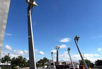 En la Plaza de Europa en Zaragoza, junto al Ebro y muy próxima al Pilar, se han utilizado los octaedros estrellados con tetraedros como farolas. Hay dos tipos, doce pequeños cerrados formando un dodecágono y cuatro grandes vacíos para sujetar focos.