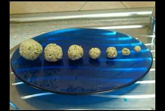 Una vez que tenemos estos nutrientes cocidos se pueden mezclar en una batidora y formar bolitas como las que aparecen en la foto. Respecto a la cantidad. Una dieta de este tipo provee aproximadamente 980 calorías por kilo de alimento. Hemos dicho que el primer objetivo es que el paciente coma. Este alimento es en general muy apetitoso, conviene templarlo un poco en el microondas antes de servirlo ya que el calor ayuda al desprendimiento de los olores que contribuyen a despertar el apetito.