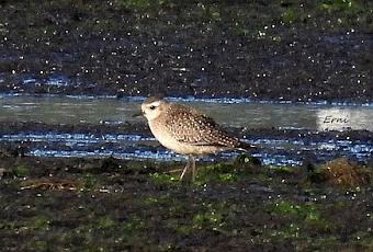 DIFERENCIAS ENTRE EL CHORLITO DORADO AMERICANO Y EL GRISChorlito dorado americano (Pluvialis dominica)Una entrada relámpago para los que penséis pasar este fin de semana por Colindres con intención de ver al chorlito americano con un vídeo de esta misma mañana. El animalito descansa durante la pleamar junto a los bloques de cemento que hay frente al mirador-observatorio del final del paseo. Según van quedando al descubierto los fangos de la zona se suele asociar a uno o dos chorlitos grises y se alimentan de los invertebrados que pululan por la superficie. Lo mejor es buscarlo 3 horas antes de la pleamar y hasta 3 horas después. A partir de ahí quedan todas las aves excesivamente lejos. Chorlito dorado americano (Pluvialis dominica)El dominica es ligeramente más pequeño, tiene la cara bastante blanca y un contrastado píleo oscuro. ¡¡Buen pajareo para todos!!