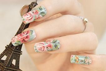 En este diseño vemos que se ha realizado un pintad en flores blancas, este tipo de diseño lo usan más novias ya que son elegantes y el color blancos es el característico en bodas o matrimonios, a parte que el pintado de flores puede simular el encaje del vestido de la novia, aquí podrás buscar diseños para uñas.