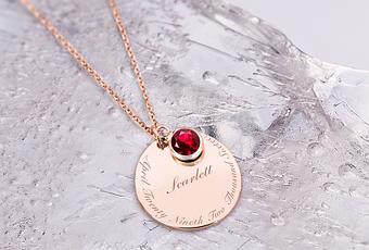 Dije Placa Circular -Dije Placa Circular Personalizable en oro 18k con gema