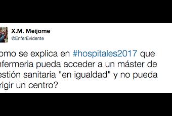 Como se explica en #hospitales2017 que enfermeria pueda acceder a un máster de gestión sanitaria "en igualdad" y no pueda dirigir un centro?— X.M. Meijome (@EnferEvidente) 30 marzo 2017