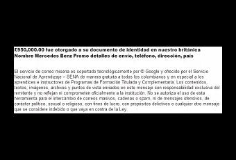 A continuación, otro email que he recibido solicitando mis datos personales para recibir un ingreso de 950.000 libras: