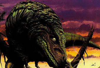 Las viñetas de Tyrant son una auténtica gozada por su calidad, su dinamismo y su nivel de detalle, con unos dinosaurios y unos paisajes maravillosos, ya bien asentado el nuevo look de estos organismos. Es reseñable también aquí, como en algunos casos anteriores, la presencia de dinosaurios emplumados (ese Oviraptor) algunos años antes de que se encontraran los primeros fósiles con evidencia al respecto. Cada vez iba quedando más claro lo estrecha que era la relación entre aves y estas antediluvianas criaturas, y la presencia de protoplumas en algunos de estos dinosaurios parecía cada vez menos descabellada. Unos pocos años más y el registro fósil demostraría lo poquísimo que sabíamos todavía en este aspecto.