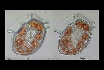 Por eso, los Peridinios van provistos de corpúsculos de colores, con predominio del amarillo, que contienen los pigmentos necesarios para la fotosíntesis. Estos corpúsculos pueden ser de diferentes colores, según las especies de Peridinios. Estos, pues, forman parte del plancton vegetal que constituye la base de la vida en los mares.