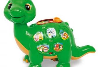 Se trata de un juguete sumamente interactivo, los niños podrán ir tocando las diferentes piezas y botones que cubren el cuerpo del dinosaurio bebé para ir consiguiendo que emita diferentes sonidos. Se puede elegir entre 4 modalidades de juego, para aprender los nombres de los animales, sus costumbres, los elementos de la naturaleza, los números y las letras, sin que falten tampoco las melodías, las canciones, las luces y los colores brillantes que llamarán positivamente la atención del bebé.