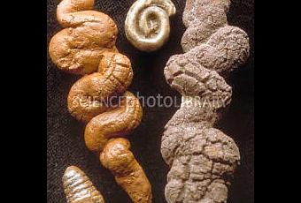 Corpolitos de tortuga y de pez. *Un coprolito es un excremento fósil.En esta ocasión hablaré de otro tipo de fósil poco ceremonioso, pero extremadamente interesante. el urolito. Por su etimología, un urolito es una "piedra de orina", pero una definición más completa y dentro del reino de la paleontología (pues en medicina un urolito es otra cosa) es "cualquier evidencia de la descarga de orina o su equivalente, preservada en la roca". Uno podría pensar que este tipo de roca es virtualmente improbable de ser generada y mucho menos ser encontrada, pero estaría en un error.