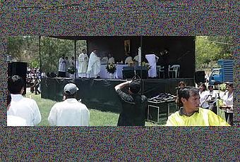 ¡Qué maravilla ver a todo un pueblo con su pastor al frente peregrinando! ¡Qué gozo ver 100 ómnibus y carros hasta Quives, capital de la santidad, catedral de la confirmación, corazón de la diócesis de Carabayllo! Unos –los menos- caminando los 62 kms., otros –los más- en auto, pero todos a una, haciendo familia, forjando iglesia diocesana, ¡en misión! Desde la creación de la diócesis en 1996 , todos los ochos de octubre Carabayllo se pone en camino, con los pies, pero sobre todo con su corazón. Los miles de fieles de todas las parroquias y los movimientos acuden al reclamo del Pastor y viven en comunión; toda una jornada para convivir, gozar del sol de Quives, de la conversación y el canto, de la caminata y el solaz, de la confesión y la celebración eucarística. Y siempre, en compañía de Santa Rosa, confirmada allí por Santo Toribio. Los dos santos que pisaron esta bendita tierra.