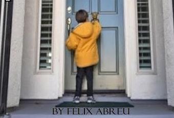 Finalmente el niño giró para irse, pero algo lo detuvo. El niño giró nuevamente hacia la puerta y comenzó a tocar el timbre y a golpear la puerta fuertemente con los nudillos. Él seguía esperando, algo lo aguantaba ahí frente a la puerta. Tocó nuevamente el timbre y esta vez la puerta se abrió suavemente.