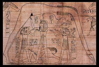 Según otro mito, Nut dio a luz diariamente al dios del sol, que cruzó su cuerpo, que representaba el cielo. En una cuenta variante, se lo representa como un viaje a través de ella. Las extremidades y el cuerpo de la diosa están llenos de estrellas. En otra descripción pictórica de Tuerca, vemos una segunda figura femenina dibujada dentro de la primera, y dentro de ella, nuevamente, el cuerpo de un hombre; las dos últimas conforman la forma semicircular de la diosa del cielo. Esto se explica por el hecho de que las dos mujeres personifican los cielos de día y de noche, pero no representa el cuerpo masculino, que puede representar el Duat. Nuevamente leemos que Nut se transformó en una gran vaca, y que con frecuencia es representada de esta forma. Los difuntos son [Pág. 174]descritos en el Libro de los Muertos. confiando en ella para tomar aire fresco en el inframundo, sobre las aguas de las que se suponía que debía tener dominio. Ella poseía un árbol sagrado, el sicómoro, que estaba situado en Heliópolis, al pie del cual la serpiente Apep fue asesinada por el gran gato Ra. Las ramas de este árbol fueron consideradas como un lugar de refugio para los cansados muertos en el mediodía durante el verano, y en su sombra fueron refrescadas por la comida en la que vivía la diosa misma.