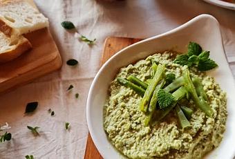 Elaboración:Lavar las judías verdes y retirar las hebras. Cocerlas en agua hirviendo con sal, durante seis minutos. Dejamos enfriar.Se ponen en remojo los frutos secos durante una hora. Enjuáganos y pasamos por la batidora, junto con el zumo de limón colado, la mostaza dulce, em diente de ajo sin germen, un pellizco de sal y 5 cucharadas de agua de la cocción de las judías, hasta obtener una crema lisa y homogénea. Los frutos secos pueden ser, almendras, cacahuetes, avellanas, nueces, anacardos, etc o una mezcla de ambos. Mi mezcla favorita es la de almendras y cacahuetes, que es precisamente la que usé en esta ocasión.Incorporamos las judías frías a la crema de anacardos, las hojas de hierba buena y de albahaca, el aceite de oliva virgen extra y un poco de sal, trituramos unos segundos o hasta conseguir la consistencia de un paté.Se sirve acompañada de crudités y de un buen pan. Personalmente me encanta con zanahorias y con apio, tampoco está mal con pimiento verde.