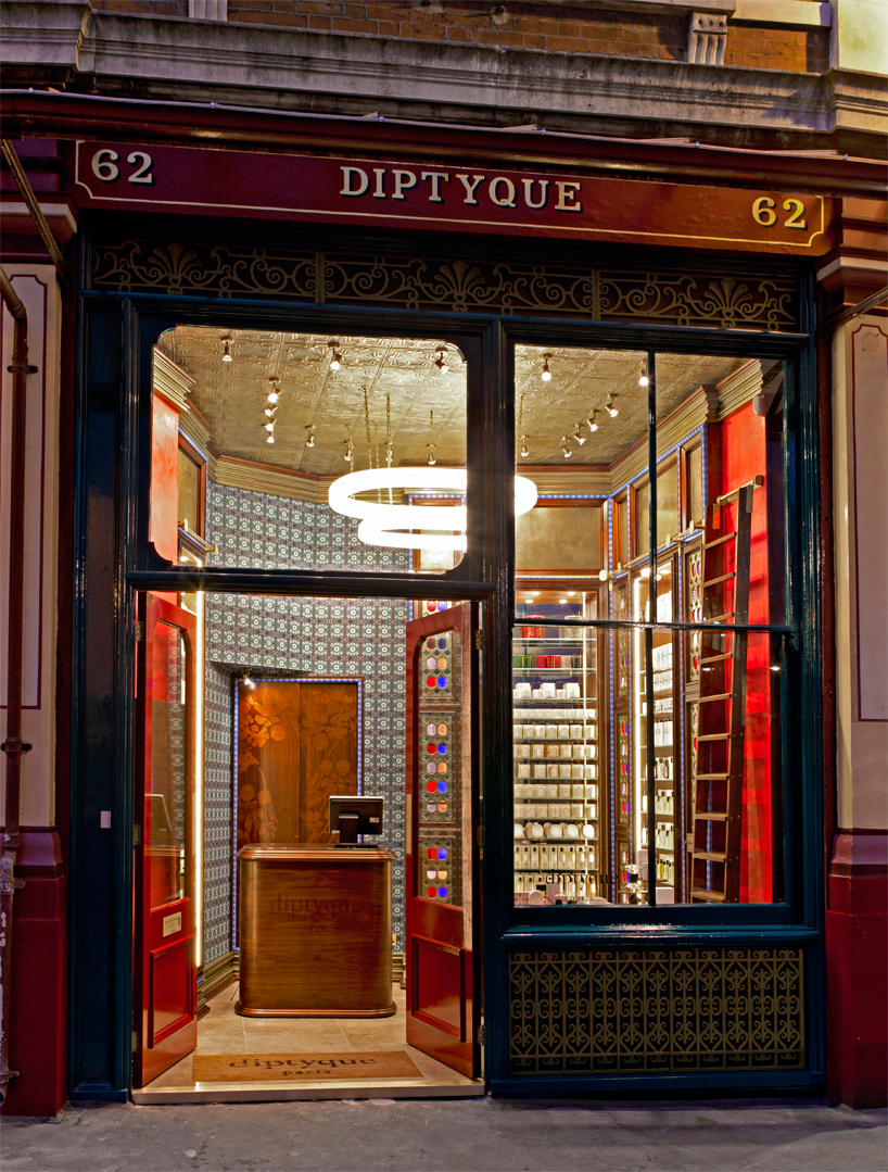 Esto le sucede a esta perfumería, diseñada por Christopher Jenner. El retomar el latón labrado como parte del diseño hace de este lugar una pequeña joya. Tiene todo lo necesario para funcionar, expositor, almacenaje y un gran diseño.