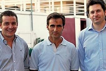 De izqda. a dcha: Óscar Plaza, el matador de toros Fernando Cámara y Óscar López