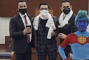 En compañía con los legisladores René Oyarvide Ibarra y Cuauhtli Badillo Moreno, alardearon de traer so propio termo y así evitar el uso de desechables de plástico s. En la imagen se les ve posando muy naturales en el pleno del Congreso Local.