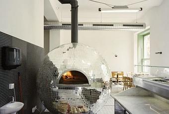El amplísimo espacio vertical del local le ha permitido proyectar el horno de una manera muy original.