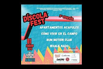 Díscola Dest nos espera en Albacete con cuatro propuestas de esas que gustan, cuatro nombres donde a nivel nacional Apartamentos Acapulco, Cómo vivir en el campo y Bum Motion Club estarán compartiendo escenario. A nivel local veremos a Whale Nado que completan el cartel y que seguro que os sorprenderán.