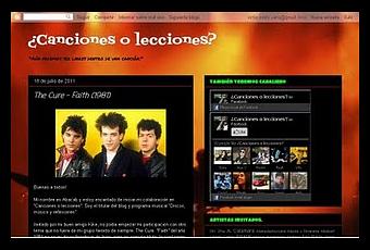 Como bloggero, diversifico mi actividad y gracias a mi compañero de radio y amigo Kike Neri comienzo a colaborar en el blog “¿Canciones o lecciones?”, una interesante bitácora en el que el protagonista principal es la música y más en particular las canciones y sus letras. Todos los días, uno de los editores publica, de forma periódica y respetando un turno de rotación, un post que pone de relevancia alguna parte de cierta canción que él considera valiosa.Una interesante iniciativa, en la que daré rienda suelta a mi perfil de selector de fragmentos que personalmente considero gloriosos líricamente hablando dentro de canciones que me hayan influido. Para quien lo desee, ya se puede leer mi primer artículo de colaboración al respecto, recién publicado. Por cierto, ¿alguien adivina antes de acceder al post sobre qué grupo irá?