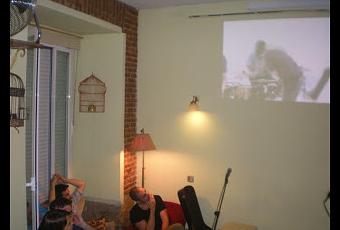 Tras terminar la explicación y comentarios por parte del grupo, se proyectó el videoclip en el local. A Javi le ha tocado sufrir mucho menos que en el anterior trabajo del grupo en este terreno y en esta ocasión se le ve junto al resto de la banda tocando en plató blanco, actuación que se alternan con imágenes representativas a base de actores (Jon Hernández y David Vivancos; ante todo, por si acaso, disculpas a los actores si he escrito mal su nombre, ya que en la grabación de audio que tengo del speech de Javi Hernández no lo escucho demasiado bien) que emulan el universo y todo lo que rodea a Philippe Petit y lo que se cuenta en la letra de la canción.