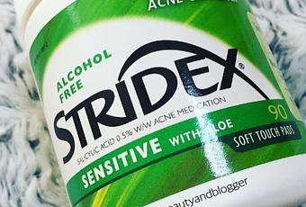 En el post de hoy os hablo sobre los discos para el acné de la marca Stridex y en el formato sensitive , que contiene aloe vera y un porcentaje más bajo de ácido salicílico que su hermanos los Stridex maximum.