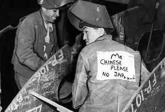 En un esfuerzo por desviar aún más el hostigamiento, los chino-estadounidenses comenzaron a usar distintivos y a portar banderas para mostrar claramente su herencia china y evitar ser confundidos con los japoneses.Cuando EE.UU. Entró en la Segunda Guerra Mundial y las tensiones con Japón siguieron en aumento, los estadounidenses de origen chino, e incluso los periódicos chinos adoptaron la retórica anti-japonesa y los apelativos ofensivos raciales utilizados por la prensa norteamericana, que utilizaba rasgos seudocientíficos para distinguir a un japonés de un chino, como los aparecidos en la revista LIFE del 22 de diciembre de 1941.