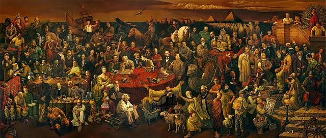Curiosa discusión... En ella aparecen retratados personajes famosos de la política, de la ciencia, la filosofía, el arte, el cine, del deporte...Haciendo "clic" en este enlace y a continuación sobre cada personaje, se abre una ventana de wikipedia con información sobre él.