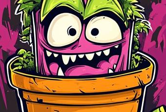Se utilizó un enfoque vectorial para garantizar calidad y versatilidad. El diseño fue elaborado siguiendo el concepto del monstruo de la maceta, con una paleta de colores vibrantes y un estilo gráfico moderno.