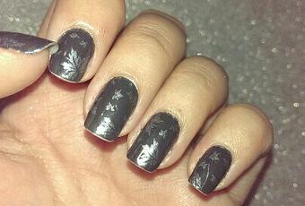 Primero he aplicado 2 capas del esmalte O.P.I gris oscuro de la colección 50 sombras de Grey, en concreto es el ”Dark side of the mood”, y lo he combinado en plateado con un diseño de hojas muy bonito que compré en Born Pretty Store. Me ha gustado muchísimo cómo queda porque no se marca mucho el diseño y queda discreto, juzgar vosotras mismas… ;-)