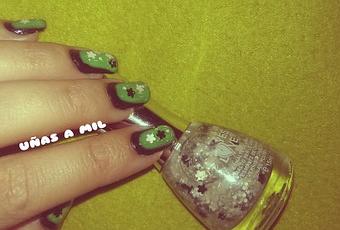 Para esta manicura de hoy, he rescatado uno de mis esmaltes preferidos y que tenía un poco olvidado…es un glitter con flores negras y blancas, luce en la oscuridad si lo expones un tiempo a la luz, se trata del G26-6 “Glow in the dark with plum flower´´ de la marca económica Yes Love al precio de 1 euro, ¿os gusta?.