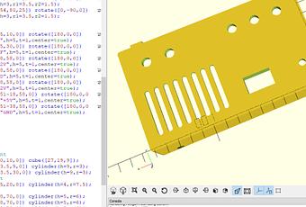 La interfaz OpenSCAD es sencilla en comparación con Tinkercad ,constando de sólo tres ventanas, siendo la ventana de la izquierda un editor de texto utilizado para ingresar el código.