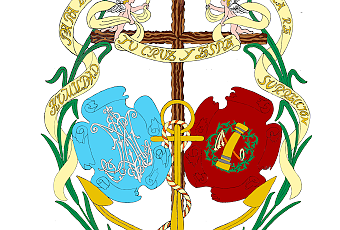Por fín, tras un larguísimo proceso que escede, con muchísimo, el plazo que inicialmente dí a la Hermandad y que ha consumido largos meses de estudio y desarrollo, entregaba ésta mañana el primer escudo digitalizado de mi hornada. El mismo es el escudo de la Hermandad de la Humildad, el Amor y la Esperanza de Cortegana (Huelva). Dicho escudo se desarrolla a partir del primitivo de la Hermandad que constaba de la misma base que el realizado por mí, ancla sobre cruz, Ave María a la izquierda y Columna con flagelo a la derecha, con dos ángeles con orla y corona real cerrada. En el nuevo se elimina el pergamino que inscribía el escudo y se adicionan dos hojas de palma que, enrolladas a las orlas circunscriben el conjunto dándole empaque y fuerza sin una ornamentación contundente y excesiva. Muy en la línea de los valores y el espíritu que quiere transmitir la Hermandad.Por mi parte he pretendido optimizar partes que en el diseño original se encontraban más solapadas. Se ha hecho más grande el ancla cómo elemento de estabilización y para que sus brazos acogan a los dos pergaminos que acogen el Ave María en plata sobre pergamino celeste y la columna con flagelo sobre pergamino sanguíneo. Asímismo cómo elemento dinamizador y aglutinante las hojas de palma que lo flanquean a ambos lados haciendo cuerpo con la orla en la que se lee el lema de la Hermandad "Humildad para llevar tu Cruz y Esperanza en la Resurreción" cómo principal objetivo del desarrollo de la actividad de la Organización Cofrade a la que nos referimos. Por último, se lleva a cabo una reducción de la Corona Real Cerrada para dar más volumen a los elementos patrimoniales de la Hermandad, la Cruz, el Ancla y los dos pergaminos que acogen los símbolos de los titulares. Un escudo que he disfrutado mucho adaptando a las necesidades de la Hermandad y del que espero queden tan satisfechos cómo yo mismo.