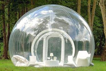 ¿Os imagináis poder pasar una noche al aire libre totalmente protegidos? Ver las estrellas, ver el amanecer, fundirnos con la naturaleza sin pasar frío o calor,... ¿Genial, verdad? Pues este es el concepto que han ideado y producido dos diseñadores franceses, Frederic Richard y Pierre-Stephane Dumas: la Casa Bubble House.