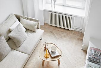 Blancos y grises por todas partes, acogedores suelos de madera clara y destellos de cobre que no pueden gustarme más. ¿Os habéis fijado en el grifo de la cocina? ¿Y la instalación de la ducha, con toda la grifería vista destacando sobre azulejos negros? También de cobre son los casquillos de las bombillas, un pequeño toque industrial en este mundo tan nórdico, y el buzón de la puerta que me tiene muerta de envidia...