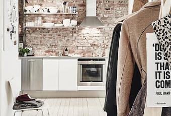 El ladrillo cara vista, original de la vivienda aporta a la cocina gran
