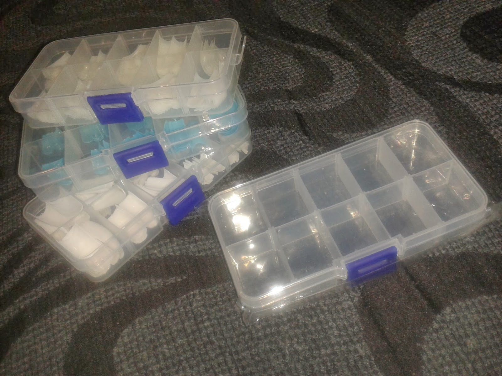 Como tenía todas las tips de colores repartidas en bolsas, me parecía buena idea hacerme con estas cajitas de plástico con compartimentos. Aquí donde las veis cuestan un rato caras, necesitaba como diez, y no estaba dispuesta a gastarme 50 euros en plástico,así que me puse a buscar en ebay a ver que ganga encontraba.... y sí, conseguí cada una de las cajitas a 1,17 euros, precio que me pareció más razonable.
