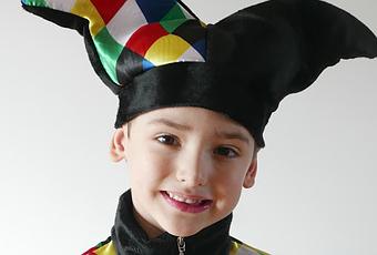 Hoy Gabriel es un pequeño arlequín, siempre tan risueño es un disfraz que sin duda va con su personalidad y que va a disfrutar un montón durante el Carnaval de este año....Ha sido muy fácil de hacer y todo se lo he cosido en casa, sin necesidad de pisar un chino. Con los tejidos de Ribes & Casals, que llegaron a mi, tras haberlos elegido en su web de tiendatelas.com