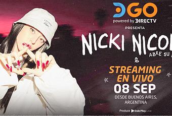 Además, tras la emisión del show en vivo, DGO pondrá a disposición todo el material de Nicki Nicole en formato on demand por 30 días para que los usuarios puedan verlo en cualquier momento y lugar a través de diversos dispositivos como un teléfono celular, un smart TV, una tablet o una computadora.