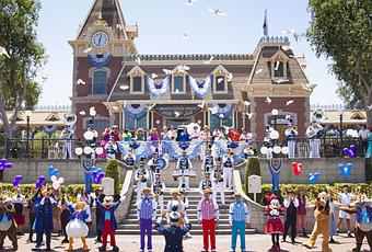 Disneyland conmemoró su papel de parque original de Disney con festividades que incluyeron la Disneyland Band, bautizada como la “Marcha Más Feliz de la Tierra”, y que recorrió Main Street, U.S.A., y un reparto de 61 personajes Disney, en la Disneyland Train Station.