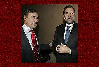 En la fotografía que ilustra el post aparecen Pedro José Ramírez, director del diario nazi El Mundo, y su marioneta Mariano Rajoy, presunto líder del Partido Popular español.